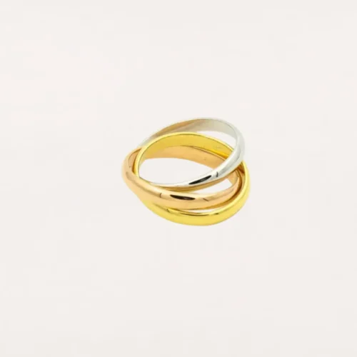 [ZYRONO] GOLD HARMONY OF THREE – TRIPLE-TONE INTERLINKED EARRINGS FOR TIMELESS ELEGANCE, CLASSIC MODEL