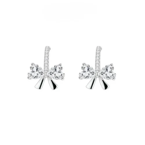 [Zyrono] Innovative Bow Silver women’s earrings CDE3176SV Free Shipping