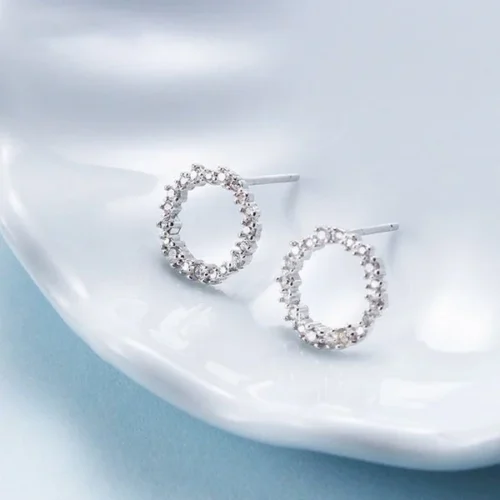 [Zyrono] JUSTE EARRINGS 12.75MM SILVER DIAMOND Free Shipping