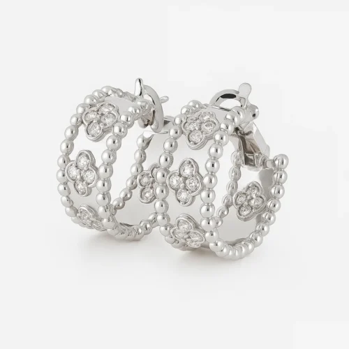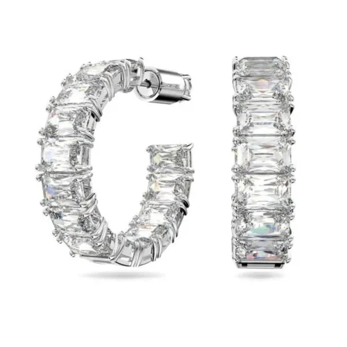 [Zyrono] Millenia Hoop Earrings Silver CDE3044WH Free Shipping