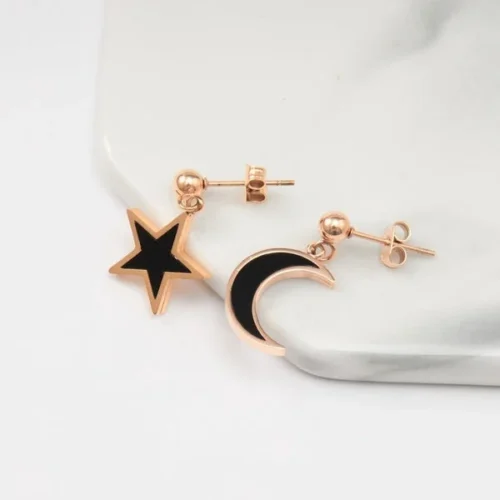 [Zyrono] Moon Star Earrings Rose Gold CDE3016.BL Free Shipping
