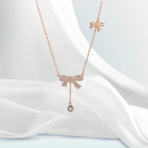 [Zyrono] Bow Lovely Girl Necklace CDE6004RG Free Shipping