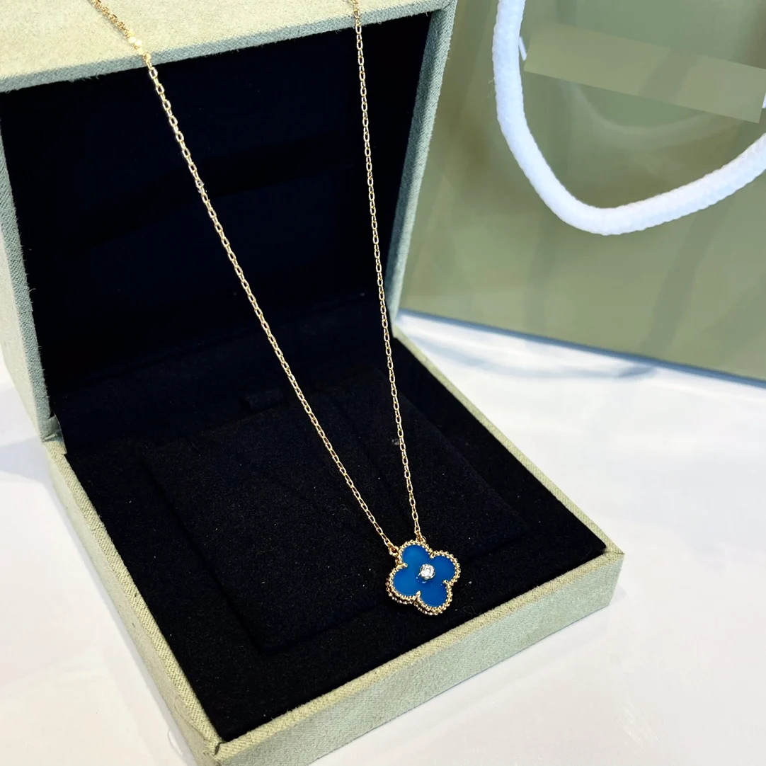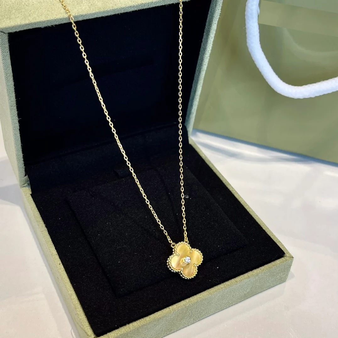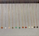 18K Gold Plated Four-Leaf Clover Necklace in S925 Sterling Silver – Mother of Pearl & Onyx – Adjustable Elegant Jewelry for Women