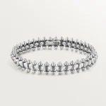 The Clash Silver Bracelet brings a modern edge to timeless design, expertly crafted from premium 925 sterling silver for exceptional durability and shine. Measuring 6.1 mm in width, its sleek silver finish adds a bold yet versatile touch to any outfit. Available in size 17, with optional 18k gold plating or 18k solid gold upon request, it is meticulously made to mirror the original with 99% accuracy in both color and quality. For added confidence, returns and exchanges are accepted within one month in the event of any manufacturing defects.
