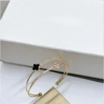 This luxurious open bangle bracelet is designed with a refined double-layer structure, blending elegance and modern style. One side of the bracelet is adorned with a polished clover motif, symbolizing luck and timeless beauty, while the other is embellished with a sparkling line of pavé-set crystals for extra brilliance. The slim gold-tone frame with rounded tips ensures both comfort and durability. A versatile statement piece that transitions effortlessly from everyday sophistication to evening elegance.