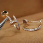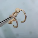 The Juste Earrings 12.75mm Rose Gold Diamond blend the warmth of rose gold with the sparkle of cubic zirconia. Crafted from premium 925 sterling silver and plated with 18k gold, these earrings measure 12.75mm in inner diameter and 1.8mm in width, offering a subtle yet elegant statement. Our jewelry closely mirror the original in both color and quality.