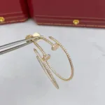 I was pleasantly surprised by the quality. However, both bangles require a bit of force to open, especially the nail bangle, which is quite tight. That’s not necessarily a bad thing—it adds a sense of security—but it does take some effort to unlock. The other bangle opens more easily, though it’s still snug. Compared to the nail bangle, it’s definitely easier to manage. I usually don’t like stacking or layering my jewelry, and I rarely wear anything on the same wrist as my watch. But I wanted to take photos of how these bangles look when worn for the first time. They look great as a set, and they also work well individually. I’ll likely wear them on the opposite hand from my watch, though putting them on was a bit of a challenge—and taking them off was even harder!. I might need to break them in by wearing them more often. The locking and unlocking mechanism isn’t the most user-friendly, but I’m hoping it gets easier with time and use. Overall, this set is a nice alternative to my actual “Juste un Clou” bangle. Both bracelets arrived in a presentable gift box and have a nice weight to them.