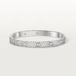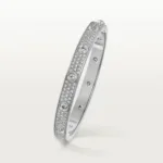 The Love Bracelet 6.1 mm Diamond-Paved with 10 striking diamonds radiates timeless sophistication. Showcasing a fully diamond-paved design along its 6.1 mm band, it is expertly crafted from premium 925 sterling silver and finished with luxurious 18k gold plating. Available in Rose Gold, Silver, and Gold finishes, and offered in sizes 16 to 19 cm, this piece perfectly merges classic elegance with exceptional craftsmanship.