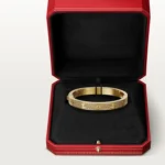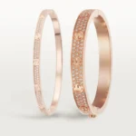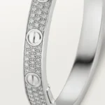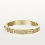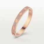 The Love Bracelet 6.1 mm Diamond-Paved is adorned with shimmering diamonds along its 6.1 mm band, exuding elegance and luxury. Crafted from premium 925 sterling silver with opulent 18k gold plating, it is available in Rose Gold, Silver, and Gold finishes. Offered in sizes 16 to 19 cm, this piece makes an exceptional gift or a refined addition to any jewelry collection. Meticulously designed, it achieves outstanding accuracy in both quality and color compared to the original.