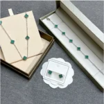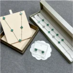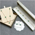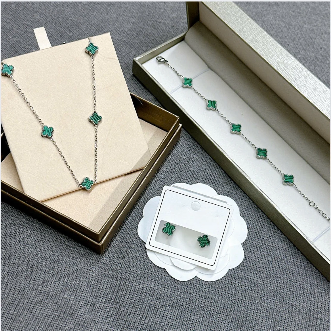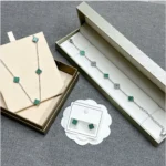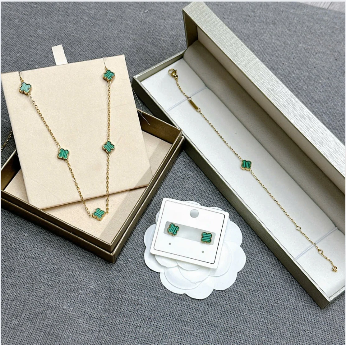 Elegant jewelry set featuring the green four-leaf clover, a timeless symbol of luck, happiness, and love. Designed with gold-tone edges and vibrant green stones, this set adds a chic and graceful touch to any outfit – perfect for daily wear, parties, or as a meaningful gift.