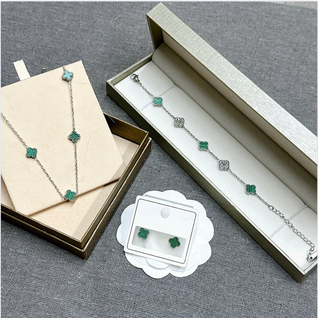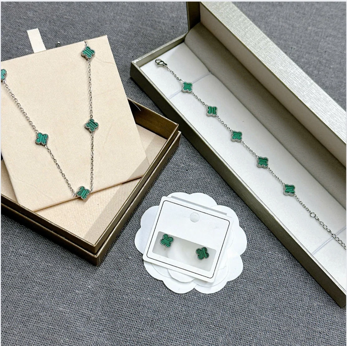 Lucky Green Four-Leaf Clover Jewelry Set – Necklace, Bracelet & Earrings Free Shipping Free Shipping
