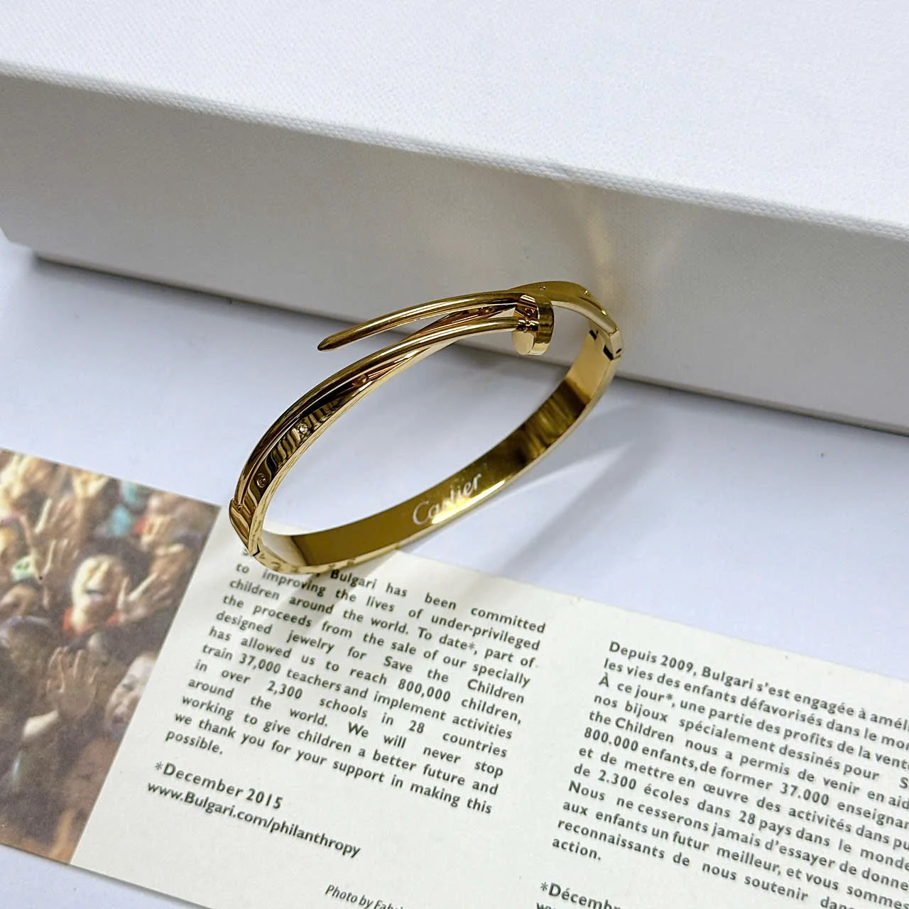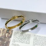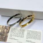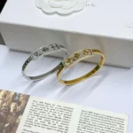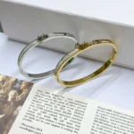 Design: Wide, rigid bangle style for a sophisticated cuff look.