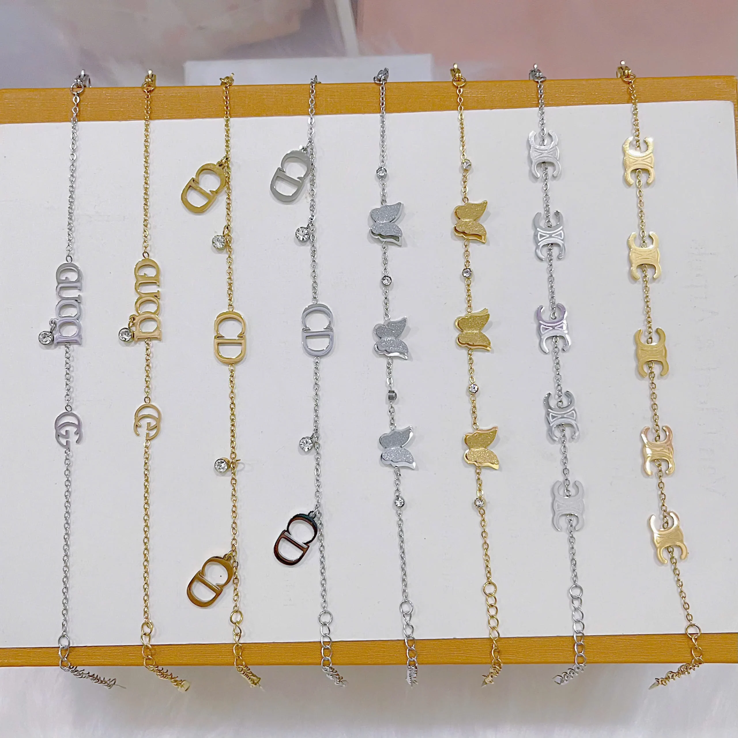 Upgrade your style with our Stainless Steel Charm Bracelets Collection, featuring multiple elegant designs including letter charms, butterfly motifs, and classic symbols. Each bracelet is crafted from premium stainless steel with gold and silver finishes, offering a chic and durable accessory for any occasion.