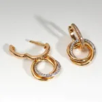 Discover the refined charm of the Trinity Earrings, crafted from a blend of gold, silver, and rose gold, and embellished with sparkling diamonds. Their sophisticated design and premium materials make these earrings an essential addition to any jewelry collection. Ideal for enhancing your ensemble with a subtle yet striking touch of luxury. Additional details: Rose Gold color, 76 Cubic Zirconia stones, made from 925 Sterling Silver with 18k Gold plating.