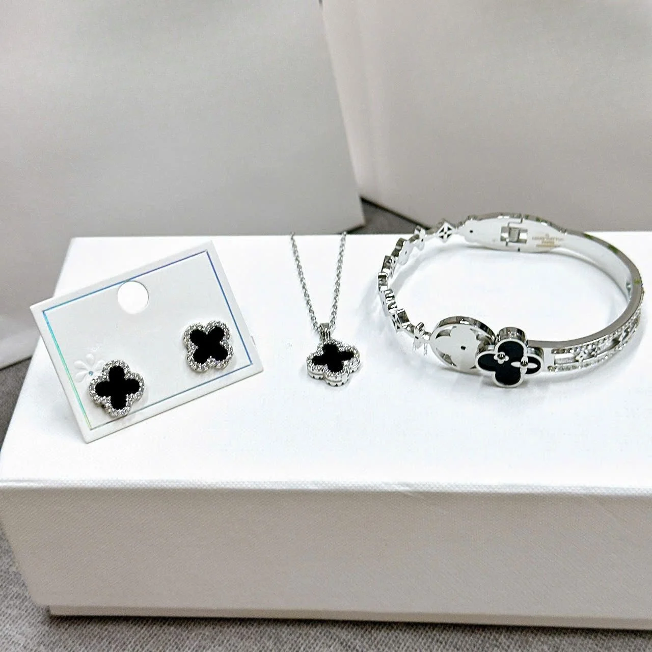 925 Sterling Silver Clover Jewelry Set – Necklace, Bracelet & Earrings Free Shipping Free Shipping