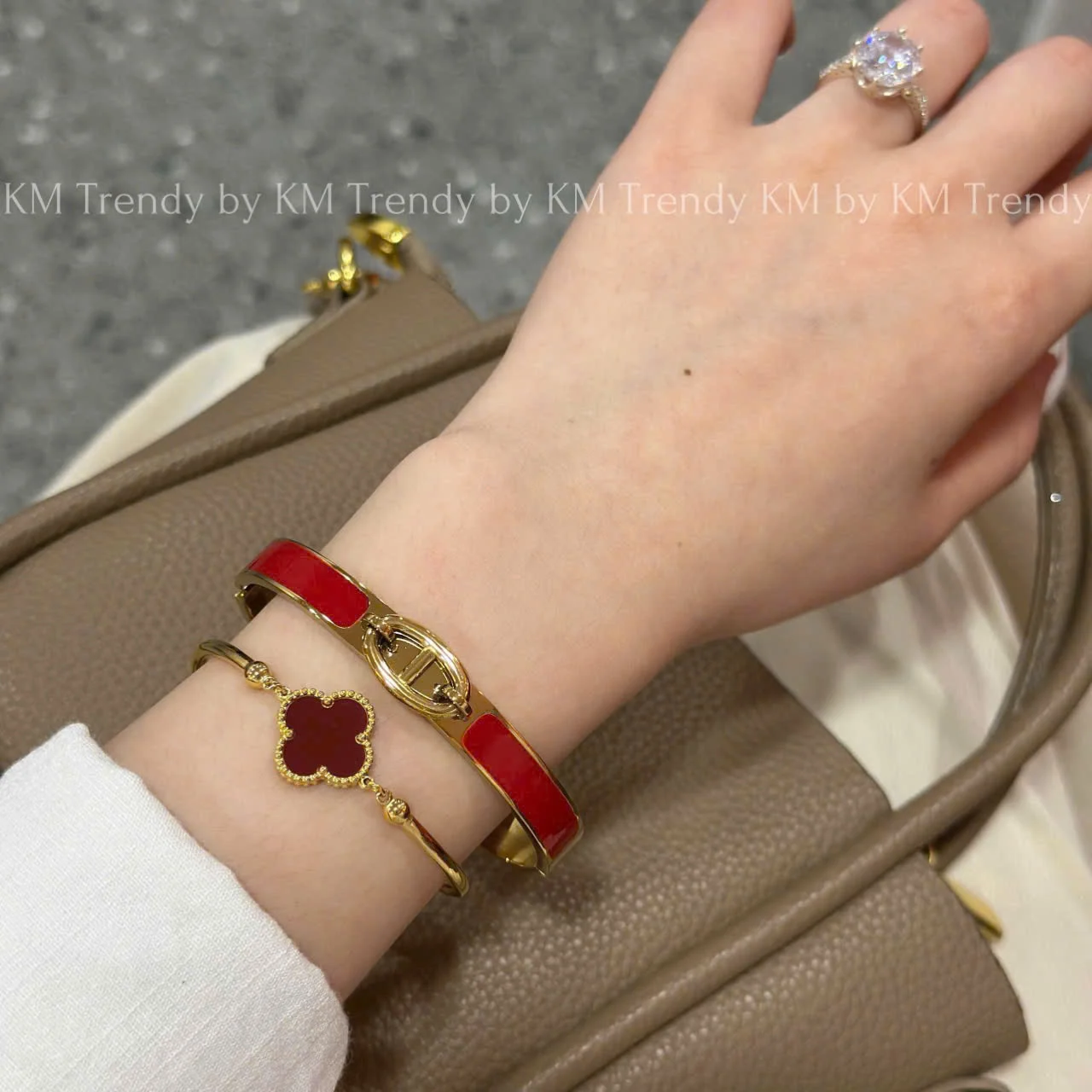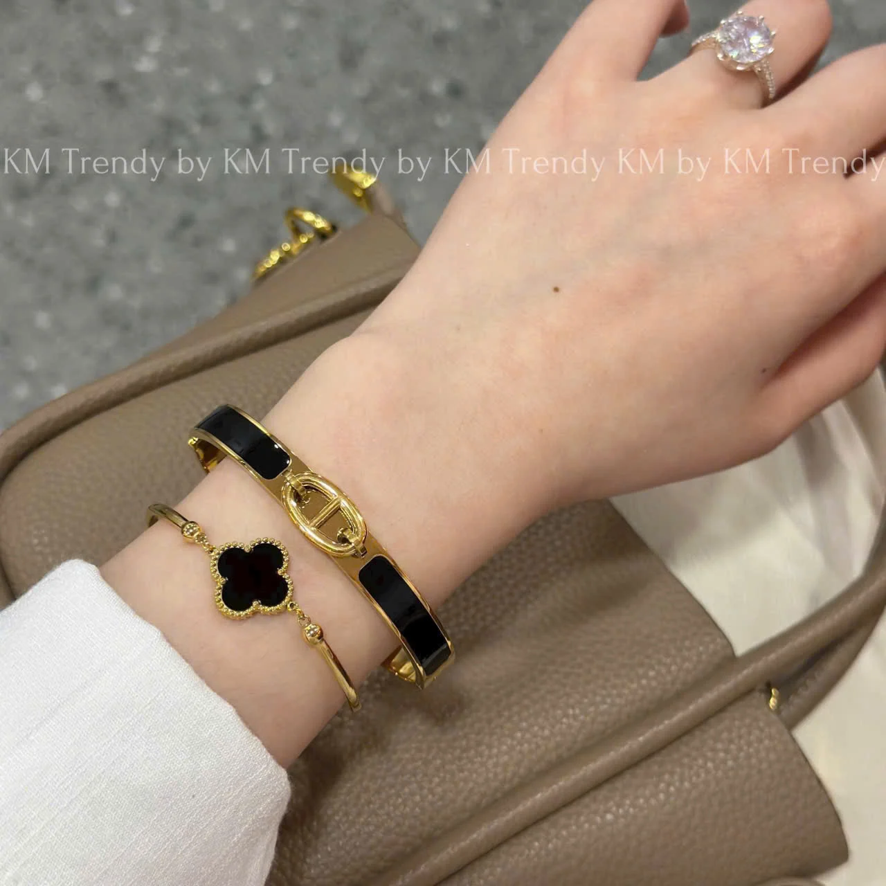 Set Includes: One Enamel Bangle and One Clover Charm Bracelet.