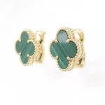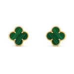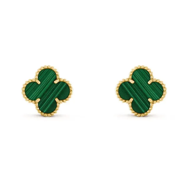 The Vintage Alhambra Malachite Earrings by exemplify timeless elegance through expert craftsmanship and luxurious materials. Featuring vibrant 18K Gold Vermeil layered over a 925 sterling silver core, these earrings combine durability with a refined finish that resists tarnish and suits sensitive skin. The rich green malachite stones are meticulously set to highlight their natural patterns, creating a captivating contrast with the warm gold tones. Perfectly balanced in size and design, these earrings enhance both casual and formal ensembles, making them a versatile addition to any jewelry collection. Their enduring style and quality ensure they remain a cherished accessory for years to come.