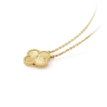 The Vintage Alhambra Pendant Clover Necklace showcases expert craftsmanship with its iconic clover motif, meticulously crafted in radiant 18K yellow gold vermeil over a solid 925 sterling silver base. Measuring 42 cm, the chain provides an ideal length for versatile styling—whether layered with other pieces or worn alone for a subtle statement. This necklace balances enduring elegance with practical durability, thanks to its thick gold plating and hypoallergenic properties, ensuring comfort for daily wear. A refined accessory, it elevates any ensemble with a sophisticated, timeless charm that reflects both quality and style expertise.