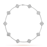 Vintage Alhambra White Gold Diamonds 10 Motifs Necklace Free Shipping