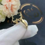 [Zyrono] 925 Sterling Silver Clover Onyx Ring Free Shipping
