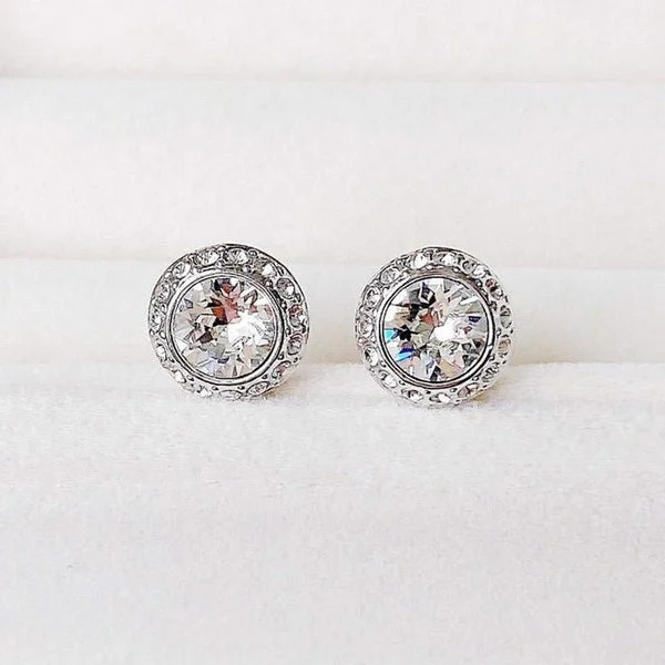 [Zyrono] Angelic Stud Round Cut Silver Earrings CDE3082 Free Shipping