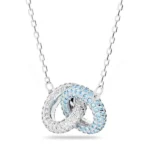 [Zyrono] Blue Intertwined Circles Stone Silver Necklace CDE6111 Free Shipping