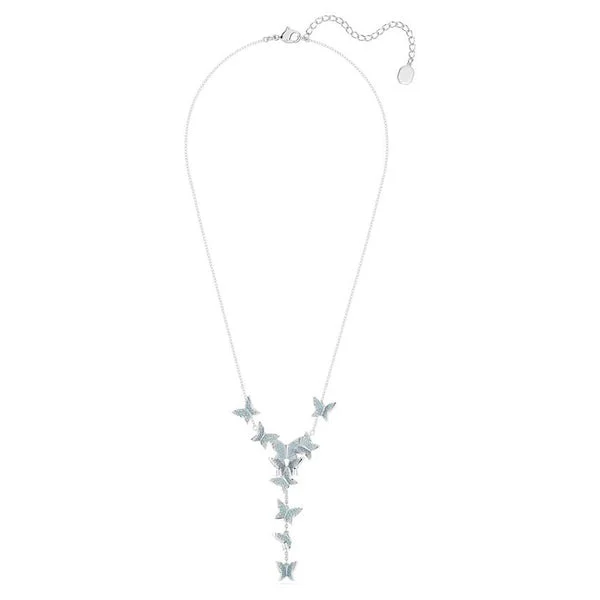 [Zyrono] Blue Lilia Butterfly Y-shaped Silver Necklace CDE6109BLU Free Shipping