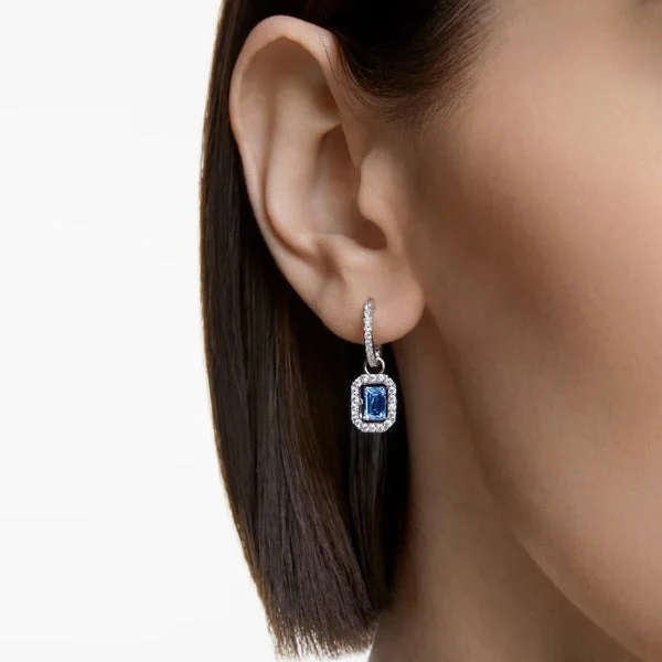 [Zyrono] Blue Millenia Drop Octagon Cut Silver Earrings CDE3075BLU Free Shipping
