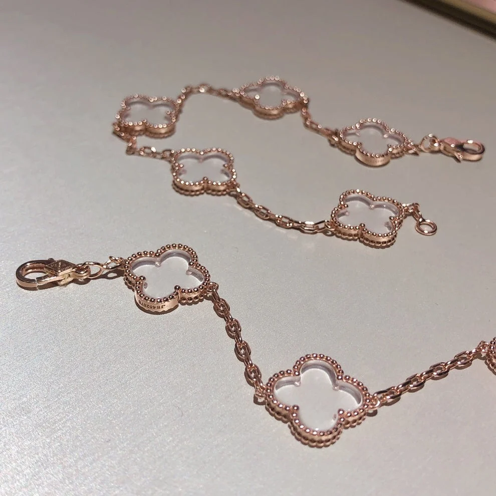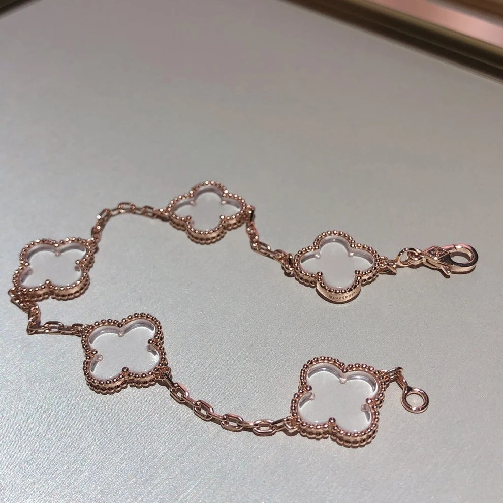 [Zyrono] CLOVER 5 MOTIF ROCK CRYSTAL PINK GOLD BRACELET Free Shipping