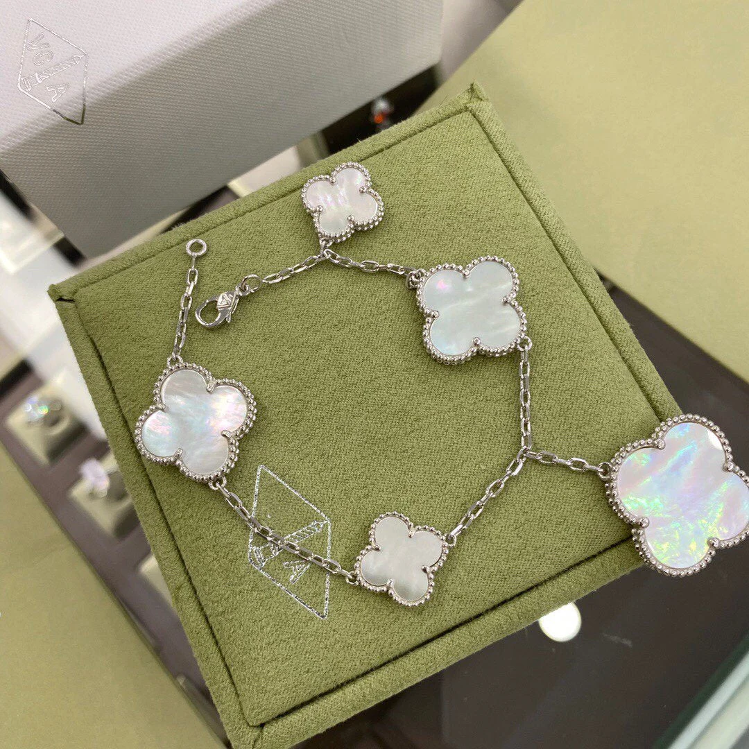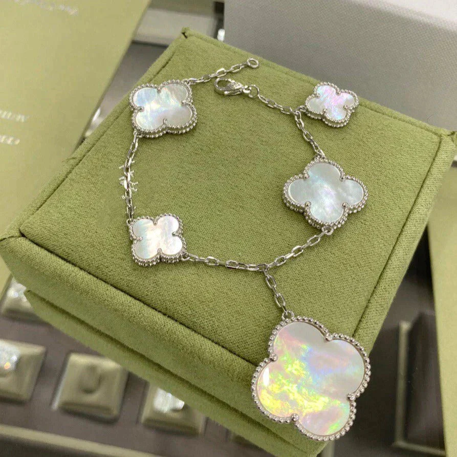 [Zyrono] CLOVER 5 MOTIFS SILVER WHITE MOP BRACELET FREE SHIPPING