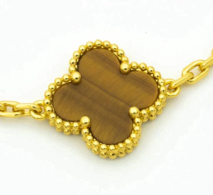 [Zyrono] CLOVER BRACELET 5 MOTIFS TIGER EYE FREE SHIPPING