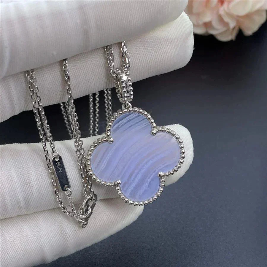 [Zyrono] CLOVER SILVER CHALCEDONY BIG CLOVER NECKLACE FREE SHIPPING