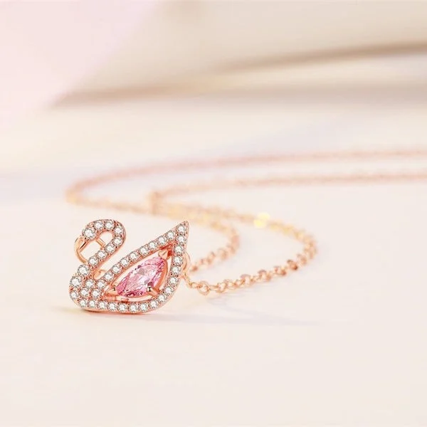 [Zyrono] Crystal Swan Necklace Rose Gold Free Shipping