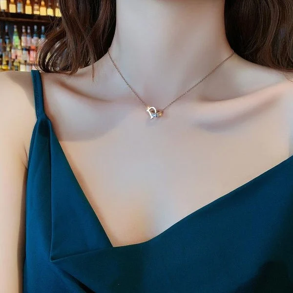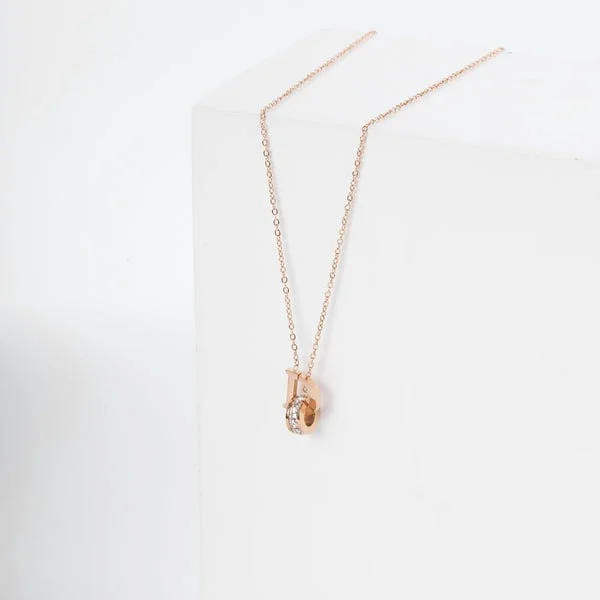 [Zyrono] D-shaped Necklace Rose Gold CDE6037RG Free Shipping