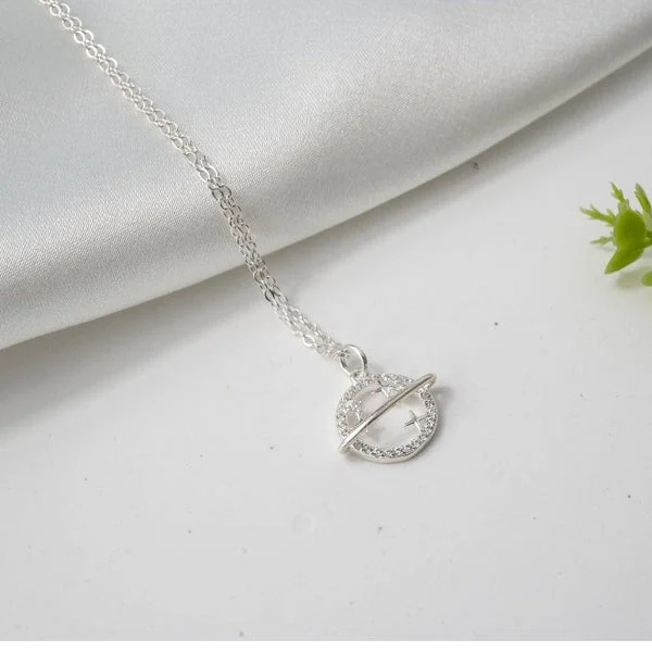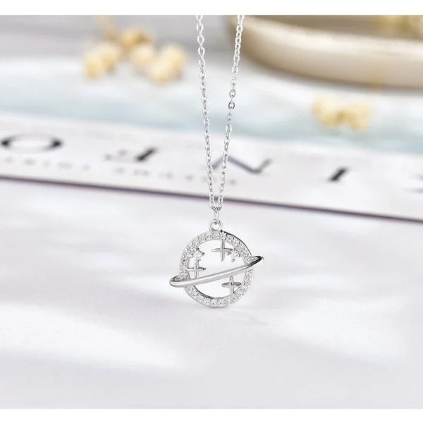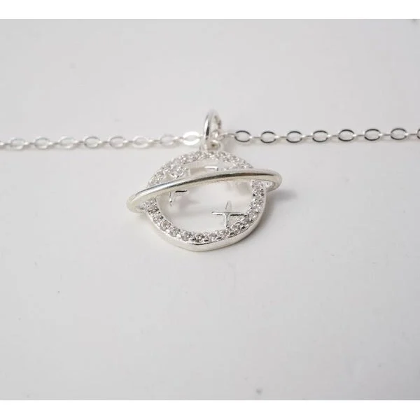 [Zyrono] Glitter Planet Necklace Silver CDE6122 Free Shipping