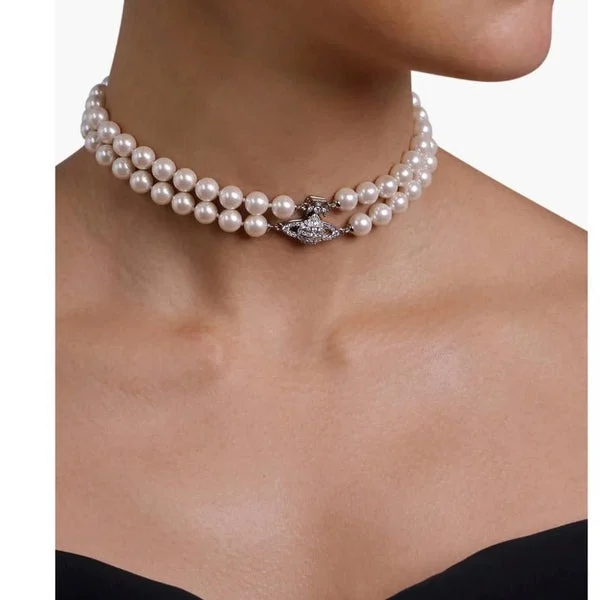 [Zyrono] Graziella Pearl Choker Necklace Silver CDE6198 Free Shipping