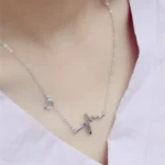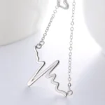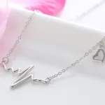 [Zyrono] Heart Shaped EKG Necklace Silver CDE6089SV Free Shipping