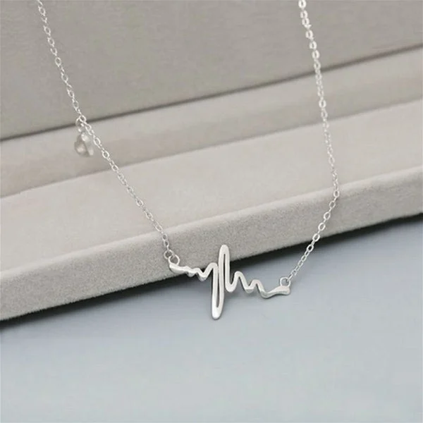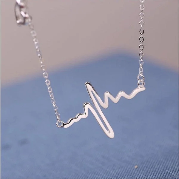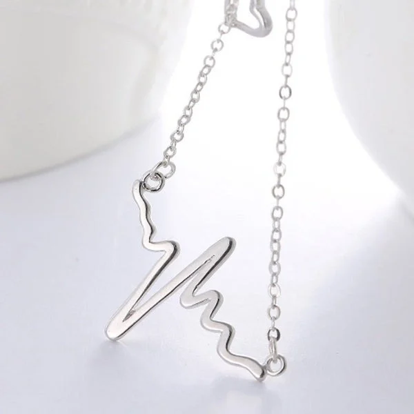 [Zyrono] Heart Shaped EKG Necklace Silver CDE6089SV Free Shipping