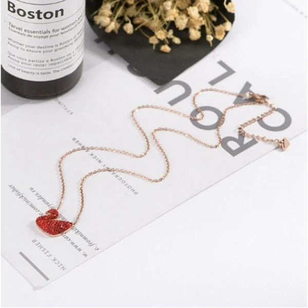 [Zyrono] Iconic Swan Necklace Red CDE6051RD – Gold Necklace Free Shipping