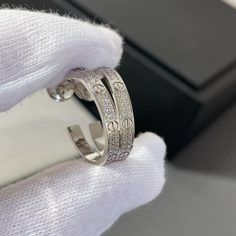 [Zyrono] LOVE DIAMOND SILVER HOOP EARRINGS Free Shipping