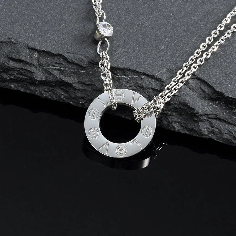 [Zyrono] LOVE NECKLACE 16MM 2 DIAMONDS Free Shipping