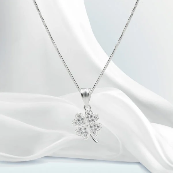 [Zyrono] Lucky Four Leaf Clover Silver Necklace – Women’s Silver Necklace Free Shipping