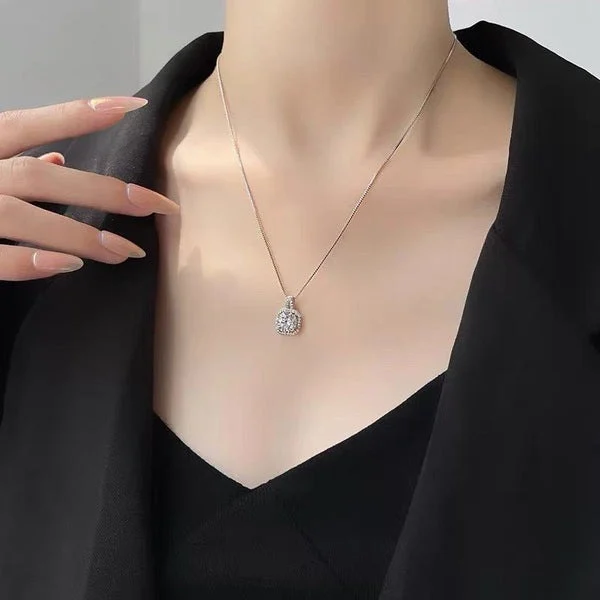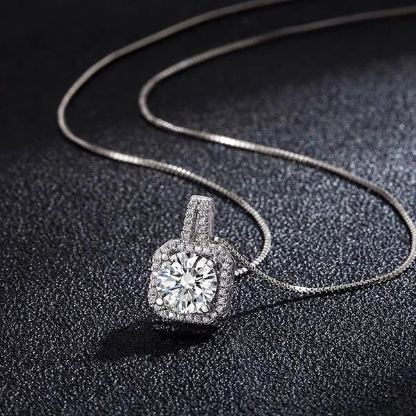 [Zyrono] Moissanite Necklace Silver CDE6163 Women’s Silver Necklace Free Shipping