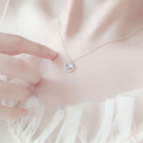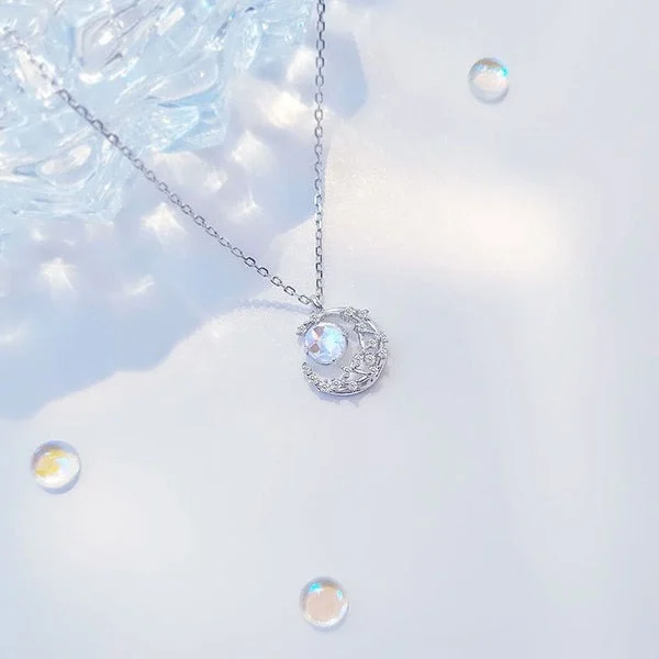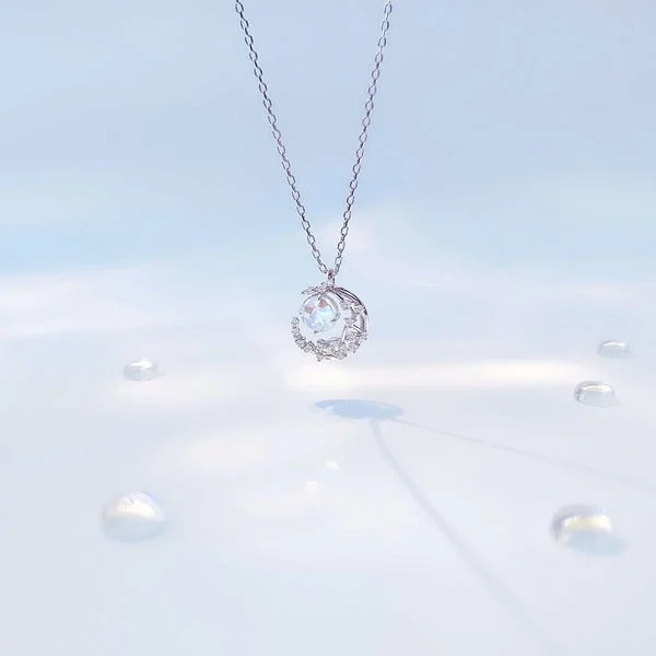 [Zyrono] Moonstone Sparkling Silver Necklace CDE6068SV – Premium Silver Necklace Free Shipping