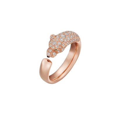 Expertly crafted, the PANTHERE RING DIAMOND 7.3MM features a stunning 7.3mm diamond, exuding timeless elegance and grace. The intricate design showcases precision and artistry, making it the perfect luxurious accessory for any occasion. Elevate your style with this exquisite piece of fine jewelry.