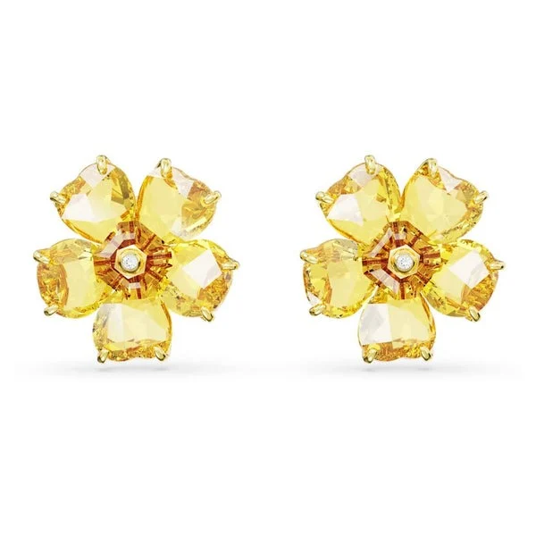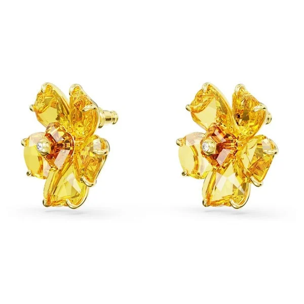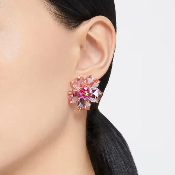 [Zyrono] Purple Florere Crystal Stud Gold Earrings CDE3076T Free Shipping