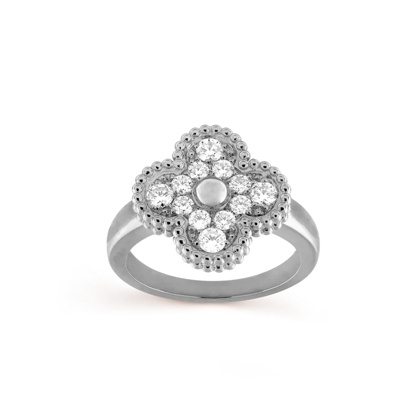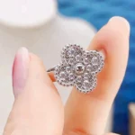 [Zyrono] S925 Sterling Silver Clover Diamond Ring Free Shipping