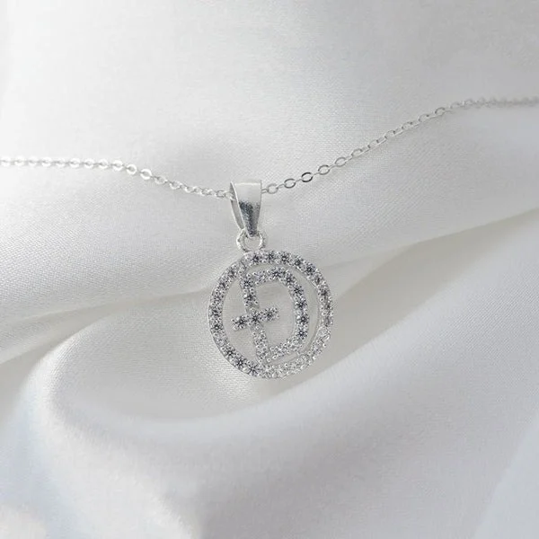 [Zyrono] Sparking D-shaped Silver Necklace CDE6160SV Free Shipping