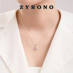 ZYRONO Sterling Silver Moon Pendant Necklace for Women – Premium Gemstone Design Free Shipping