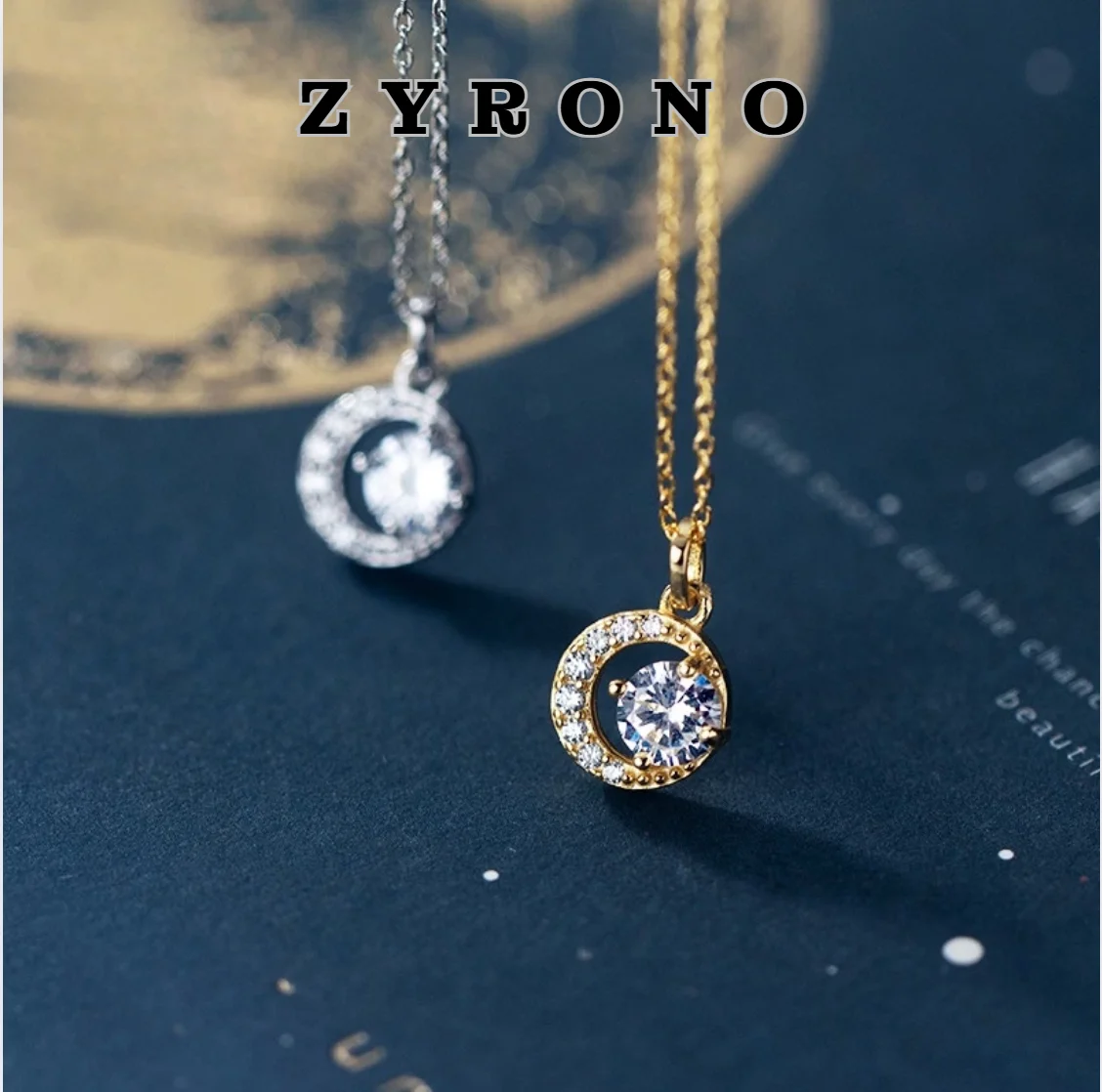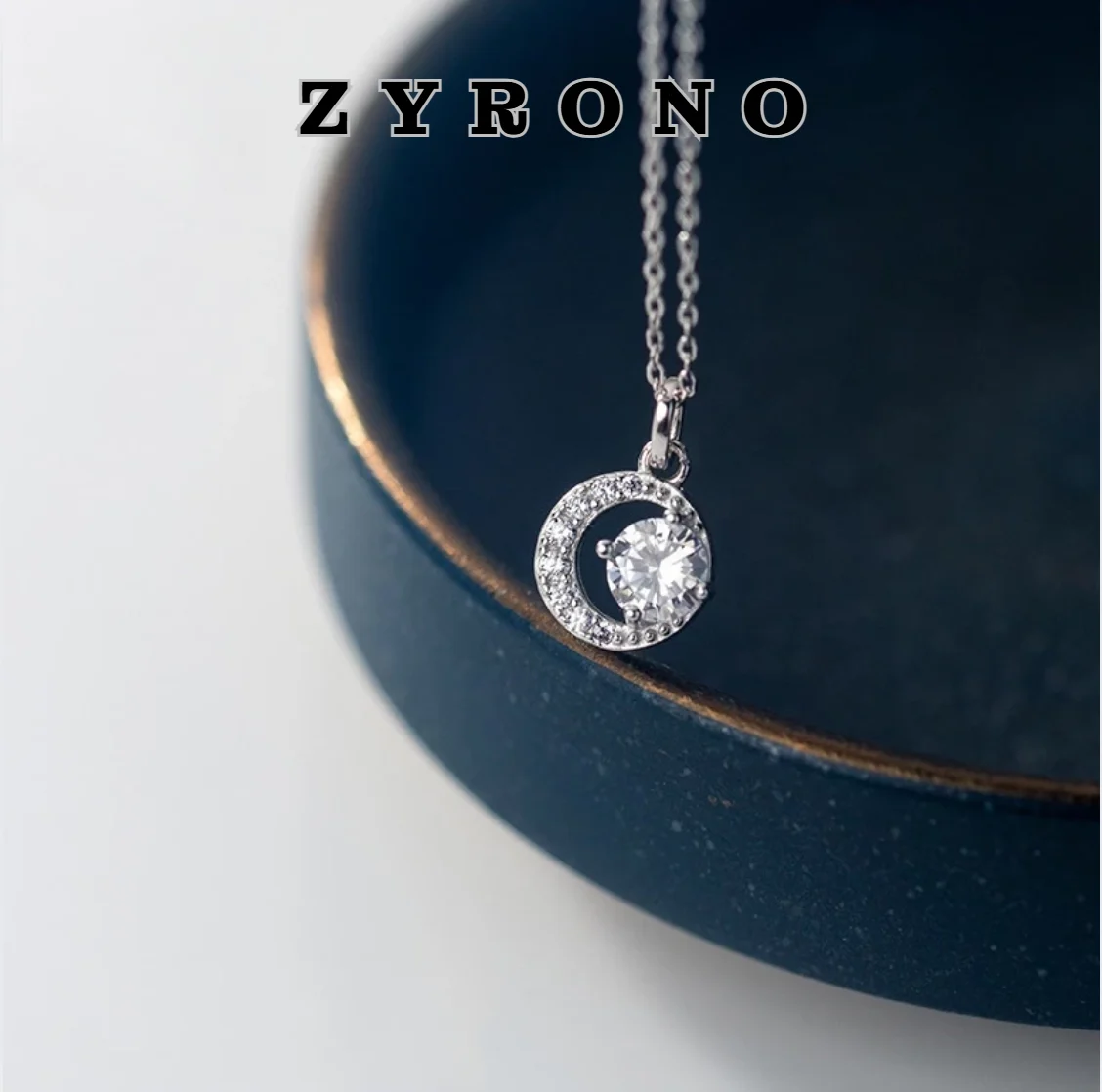ZYRONO Sterling Silver Moon Pendant Necklace for Women – Premium Gemstone Design Free Shipping
